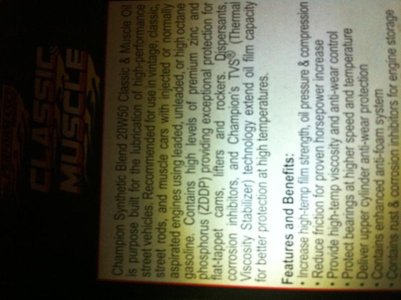BUT this oil caught my attention because it says "Classic & Muscle car Synthetic Blend Perf. Oil" and says its "purpose built for hot rods, street rods, muscle cars etc."