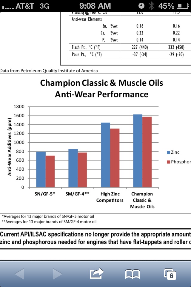 Dont get me wrong, I'm not saying that 250ppm is the difference between wiping a cam lobe, etc. or not, but given the fact that our old "horses" need it to live long, happy lives, ill take an extra 250ppm of zinc and phosphorus.