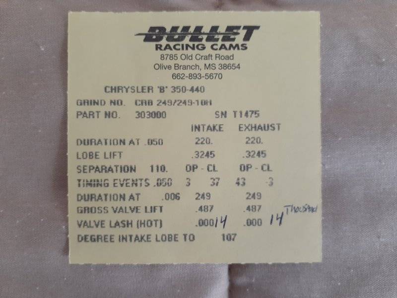 send me what info you have engine bore stroke what heads etc. just a full listhave everything but the intake runner and exhaust. running a rpm performer intake and stock HP exhaust manifolds. rebuilt engine so valve springs and ring seal are good. 168-172 cranking compression in all cylinders.