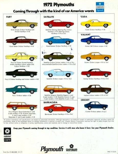 few blacks & greens, it's not a Dodge or a Valiant