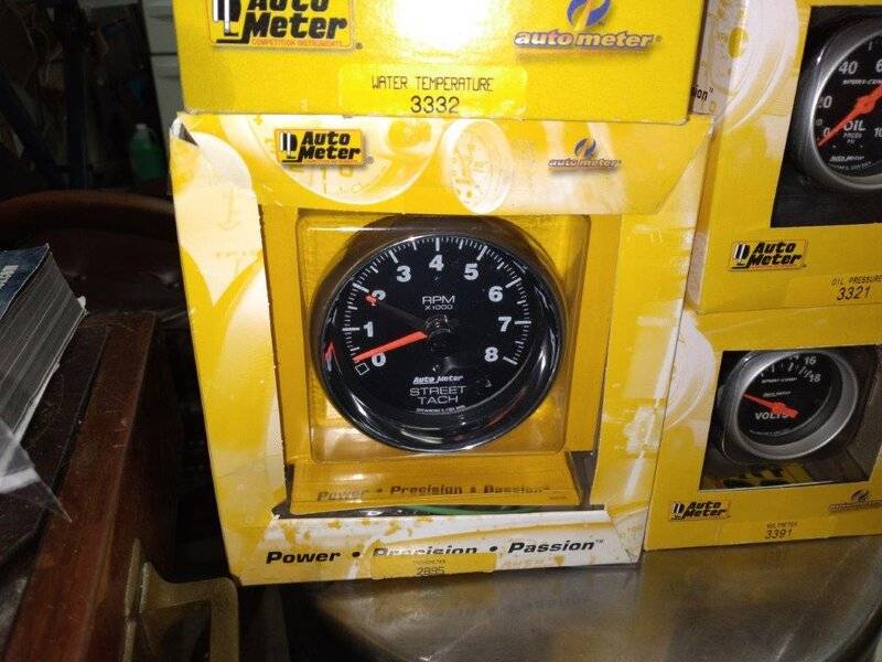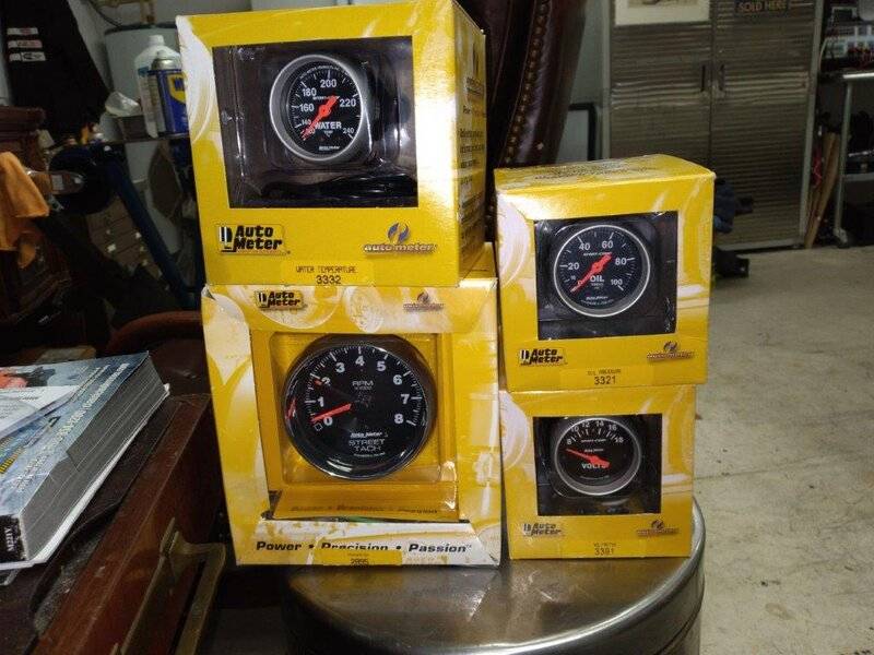 New in the box - 2-1/16" gauges were removed from boxes for mock up but were never plumbed or connected. Back in the boxes with instructions & unused hardware. Also includes three Autometer 2204 gauge pods/cups with mounting hardware. I will throw in a Autometer tach extension bracket (comes in handy if you want to mount away from interference points).