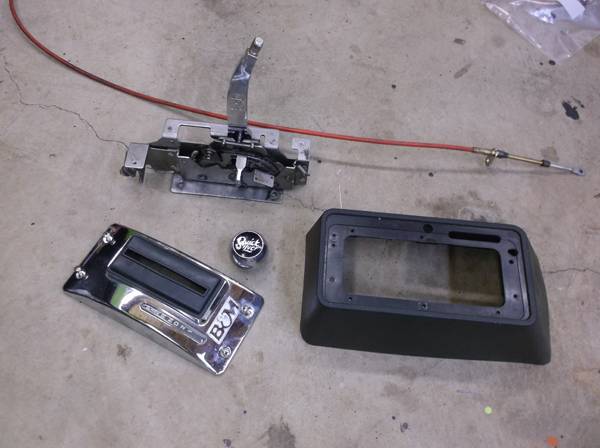 Comes with everything you see in pics. Shifter, housing, top plate,fasteners,cable,trans bracket,shifter ball,