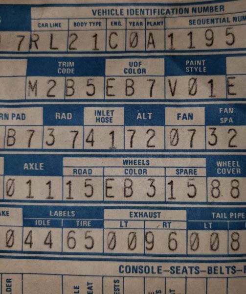 This is a portion of the original BS from my 36k 69 charger RT built at the HAM plant coded for 14" steelies and dog dishes....The one picture I found of that spare rim was not good quality....Being a X9 black car its hard to take a pic of the black on black....If you still want to see it I can post it up...