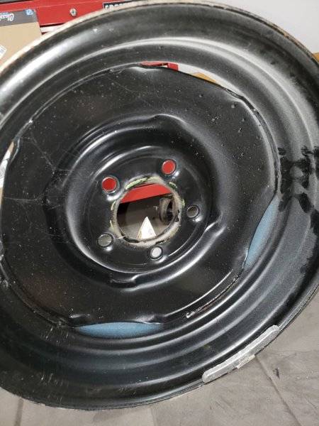 Steel wheels where coated with a black primer......Body color was applied to the faces and there will be over spray through the openings to the back side an outer rim inside...