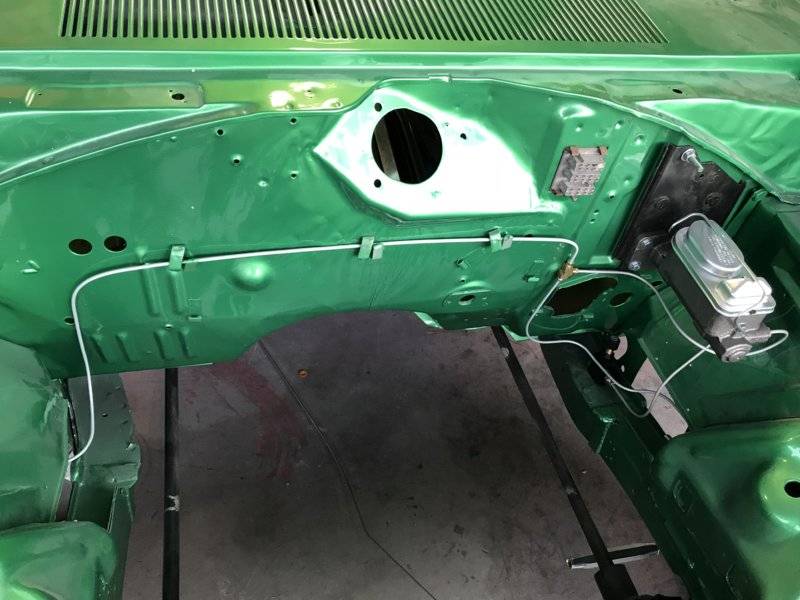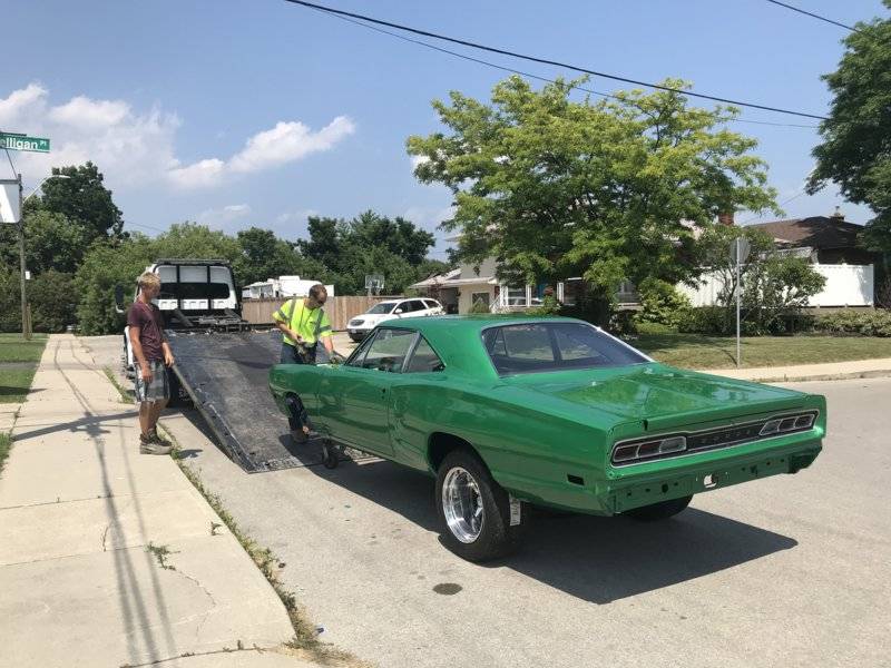 Currently we've installed a Qa1 full tubular front kit (k member, uca/lca, sway bar, strut rods, shocks), big block torsion bars, SSBC front disc brakes, Tanks Inc fuel injection gas tank w/ Walbro 400 and sending unit, Strange Dana 60, Comp Engineering rear drag shocks, Mopar SS 3600lb leafs. The car has been tubbed and painted Samba Green Pearl (Honda colour). Ive started redoing the interior with Legendary front door cards, a new carpet from Classic, new headliner, and new windlace. All black interior is what Im going for. I picked up a gen3 non mds/vvt 5.7 Hemi, a GT45 turbo, and a small block 727. Engine management will be handled by MS3 Goldbox. Will try to post updates as I go!