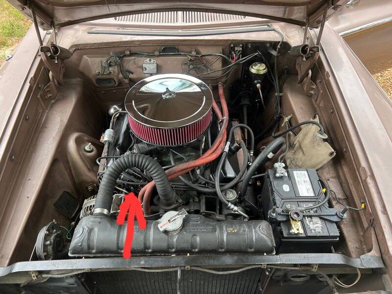 Like Dave6t4 said look under the distributor for a flat pad on the block. (Red arrow) Look for a 36 or 38