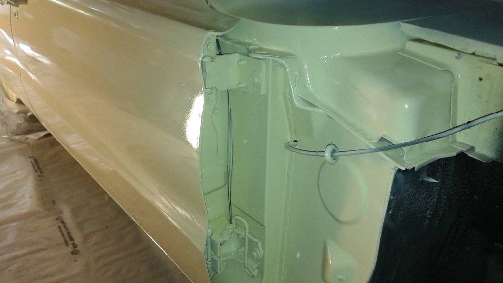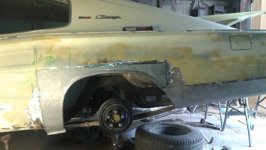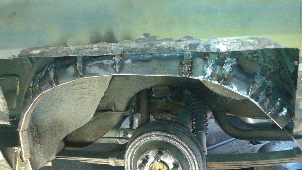 you can maybe see on last pic the flare not there I felt I had to bondo them in I took a lot of pics so if I sell it I can show what has bondo .I have never done any of this before so welding the pieces in was good .I didn't think I could repair that any other way