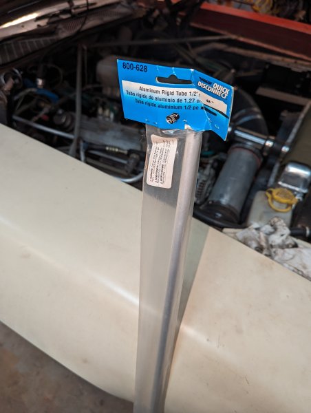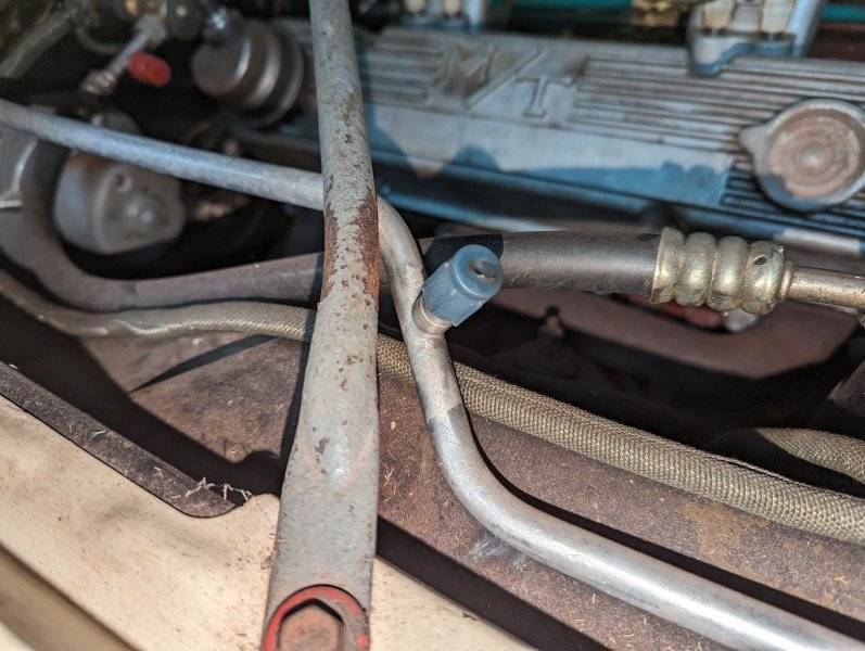The #8 aluminum line is prebent by Classic Auto Air to fit around a battery. My battery is in the trunk. I would like to have the ability to shorten the hard line like this: