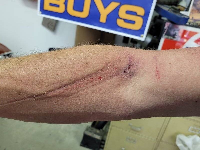 Car dropped into reverse just as I stepped out to make sure she was far enough in to close the overhead door... like I've done a 100 times before. Pinned me hard to the 7UP machine as the door folded back and I was lucky that with the other arm I was able to rock the car forward enough to release my pinched arm and turn off the car.