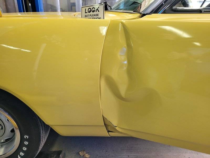 Appraiser in and out this morning in 50 minutes. Allowing for "book" hours and paint to pull nose, fender, wing, back bumper, fit door and paint entire side of car as well as a new NOS Plymouth decal (that thankfully I bought 2 years ago on spec for my parts shelves from @moparsaver). He said "about 4 hours to re and re the nose" and I just laughed and said try two days.