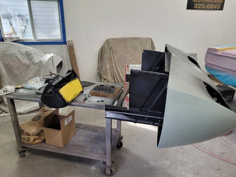 Looking very nice. I was very grateful that I could work on our car at Kroozen Metal, even if he wasn’t there. One man shop, and has done some very valuable cars. Hemi Cuda’s etc.