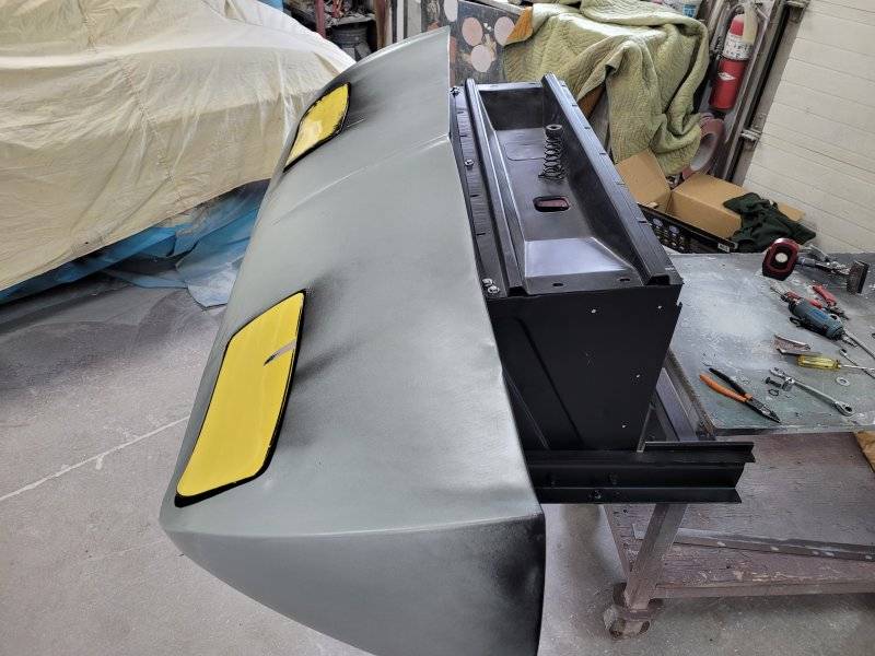 44 years of putting up with me, but still nothing surprises her going back to the day I fixed a Healey bus on a highschool trip, somewhere on the way to Washington DC in '79. Door and trunk lid in epoxy ready for paint.