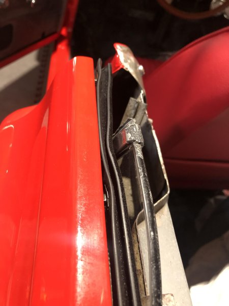 Got the front door panels roughed in...still have to staple the window Fuzzies in.... The outsides are on the door.