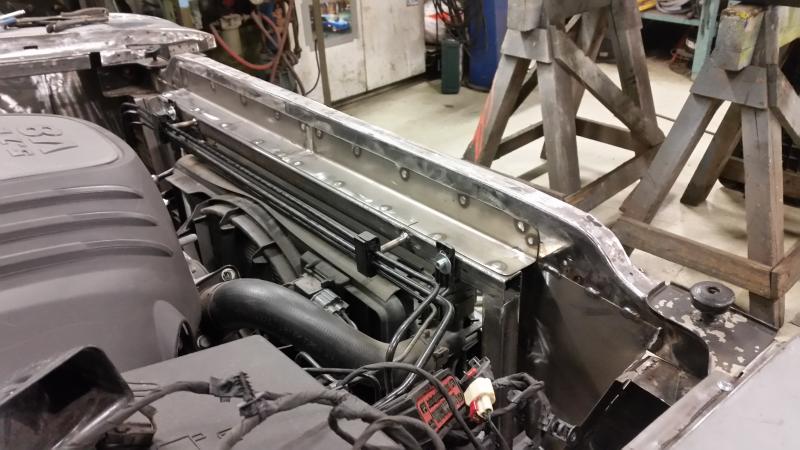 Great job! Lots of preplanning going on here forsure. Just one question... Are you worried about air damming in the engine bay? Looks like it can get air in but where is it going to escape? Seems like it would also get very hot under the hood too. Please just asking not trying to kill your project. I LOVE IT! Keep up the awsome work!