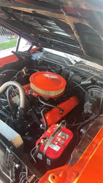 Updated radiator, new orange powder coated Hemi valve covers and air cleaner, new headliner, upgraded Mopar steering wheel, fresh wet hemi orange paint job, brand new red top battery, new ignition, new avs carburetor, new brakes, recent tune up and engine tune