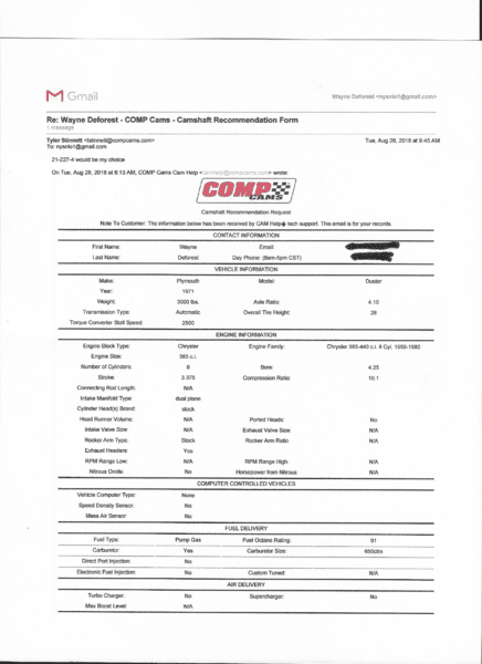 Hi all, submitted cam form to Comp this is what they sent back. Thoughts please The car will not be driven daily. Car shows, cruise-ins, weekend warrior, some strip time. What are your thoughts on their choice? Thanks