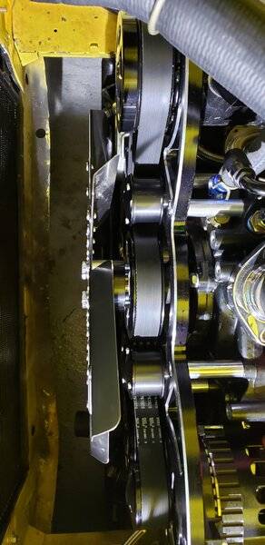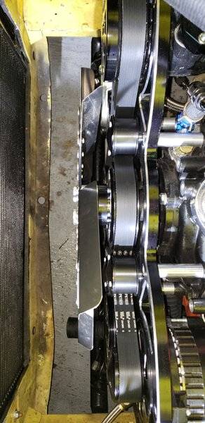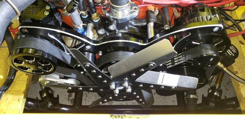 I needed the brass colored sleeve on both the water pump pulley to CVF spacer (black) and the CVF spacer to Jegs fan spacer. I would like to have the sleeve machined shorter, as long as that fraction of an inch is NOT needed for clearance to the Wraptor components, so the CVF black spacer lays flat against the pulley (I don't think that space is required). For now, I will look at the stack of 2 spacers from the side, and check for any kind of wobble.