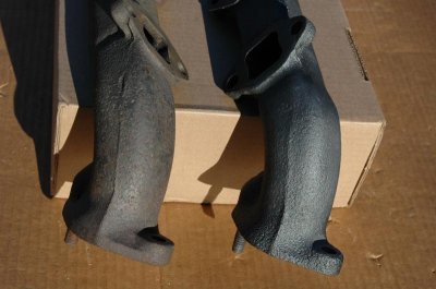 I have devised a custom right side Poly 318 exhaust manifold. I wanted an improvement of the poor exhaust pipe routing to make a dual exhaust system on a 62-65 B body. I have made a rear dump manifold to mirror the drivers side, where the pipe runs directly toward the gap between the transmission and torsion bar. This will enhance flow efficiency at the manifold, and get rid of the sharp angles of the pipe routing. I have made a few extras, and will offer the manifold at $200 plus shipping. PM me if this sparks your interest for your car. One of the questions I am left with is, why didn't the factory come up with this? See the photos . I offer this first to FBBO viewers.