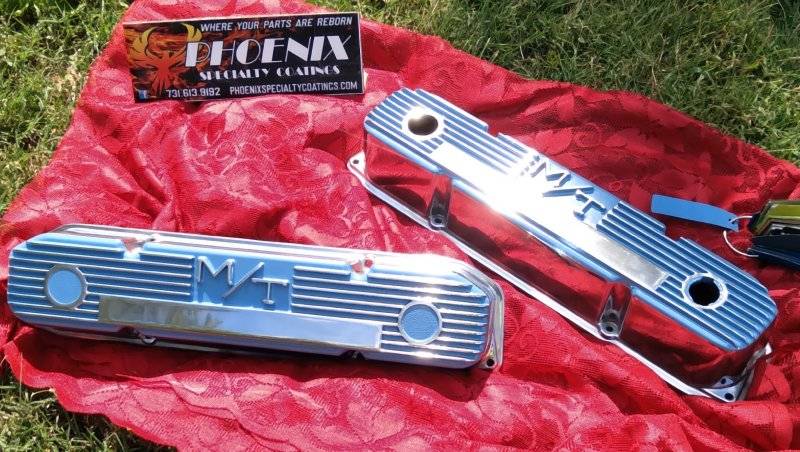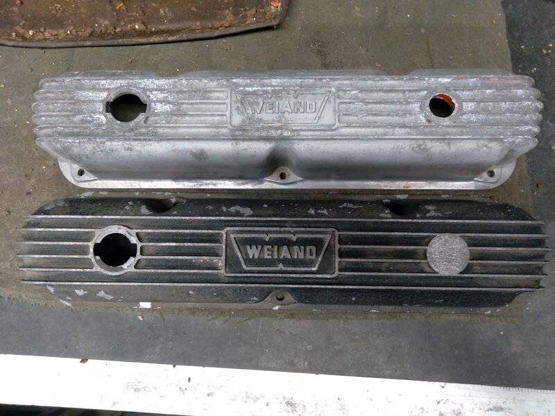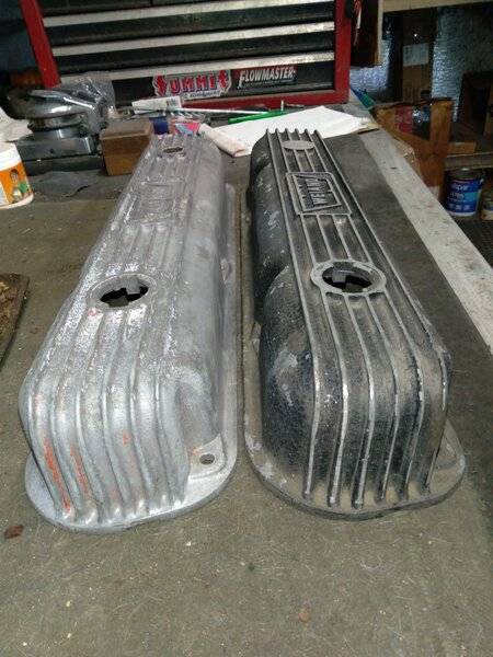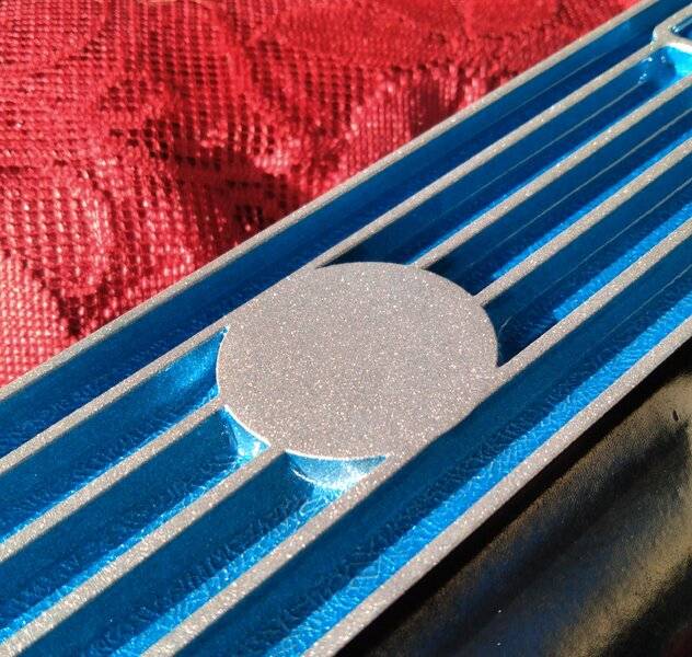 He entrusted me with a very decent pair of small block Weiand valve covers with NO parameters at all -- "Do whatever you want!" -- so I asked a few questions about the car and came up with something distinctive we can both be proud of.