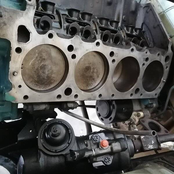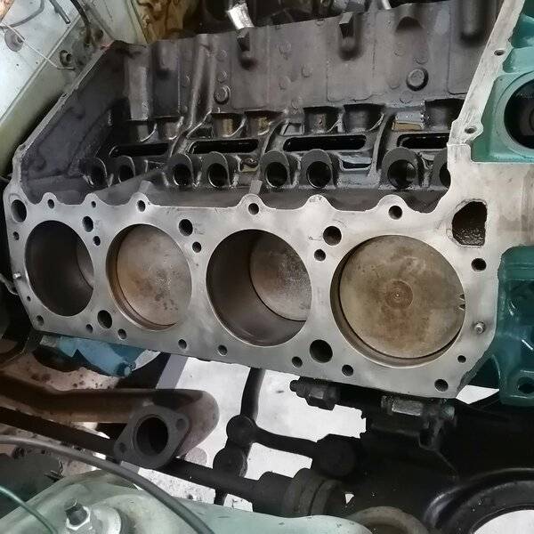 Got the deck surfaces cleaned up and was going to put the heads on, but I had to change out one long exhaust stud, and of course the one in the new head snapped off flush. That wasted the rest of my afternoon.