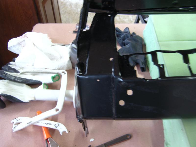 Uhhhh guys, powder coating can't really be "touched up" with any success like you're describing up there after welding up the holes and smoothing it out. It would have to be stripped and started over from bare metal scratch if you want it done right ...
