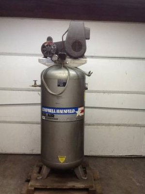 I stumbled upon this guy and I have been looking for one for the house to do a lil side action ....front end, minor engine stuff just need a good rust buster....ad is as follows Air Compressor 5hp single phase 220 60 gallon tank up right in good shape Campbell hasufeld 350.00 Don't know much about the maker/model, its in my budget and I don't feel like spending on a sears or harbor freight and end up returning it dissapointed so any help , suggestions, opinions or advice is appreciated