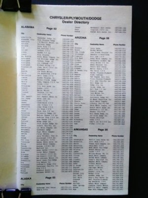 From 1989 this was included with owner's manual package. State maps have Pentastar marking location of all Chrysler dealers across the United States. Contains list of all dealers that existed at that time. Very good condition. Measures 3 3/4 x 6 1/8. $8 plus poatage.