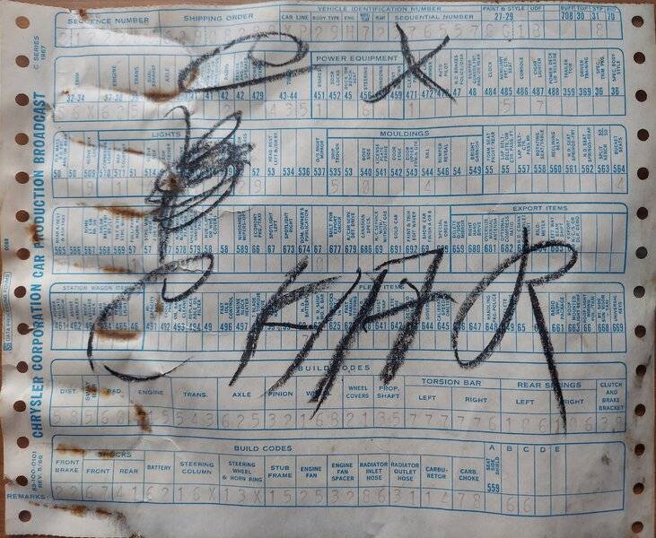 If you PM I can send tons of pics. As far as specs it's a 1967 dodge charger 383HP 4 barrel with a 727 torque flight 3 spd automatic column shift. It has the rare buddy seat in the front. Not sure what other specs but I do have the broadcast sheet I'll upload because I'd love for someone to be able to decode the whole thing for me.Nice.