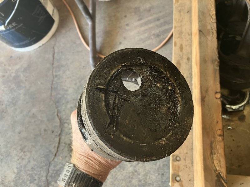 I cleaned out the rust scale as best I could with a flapper disc on a die grinder but there was still crud in the way. We hit so hard, I punched a hole from the back side. in #3 piston.
