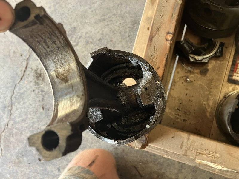 I hadn't done a full engine teardown since the 1980's. This engine was a B@#ch. My forearms were sore all the next day from wailing on the T-bar. We were not going to call it a day until all 8 pistons were out and we were finally done around 8:00.This was the first time I tore down an engine that I couldn’t spin over. It was cramped getting the rod nuts and caps off but we figured that the crank wouldn’t be needed so we weren’t all that careful pushing the pistons out. Every wrist pin was either seized with rust or really stiff.