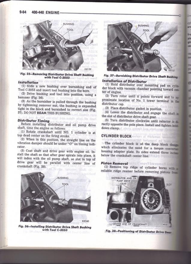 i have not had time to to even try to start the car being i had to work past dark n to work befor sin up latley is sucks being a farmer n have mopars and just to every one knows i am a mechanic by trade n my skill level is abouve average i just had a brain fart my bad n been a while since i had to work on the distributors and timming of a big block and tolaly spaced it that b n rb engines rotate counter clockwise and i have so many people telling me wish way to but oil pump gear in my brain is fried i just wish i had a big huge shop for all my mopars and enough money to fix them all lol thanks for every one input and help thanks again pat