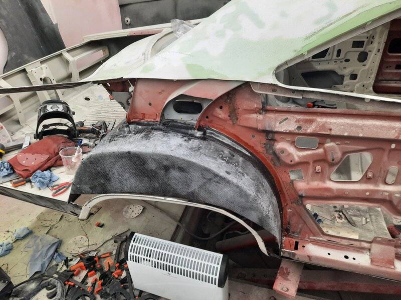 I will make a mold for the trunk, door skins and front fenders. The carbon will be resin infused this time.