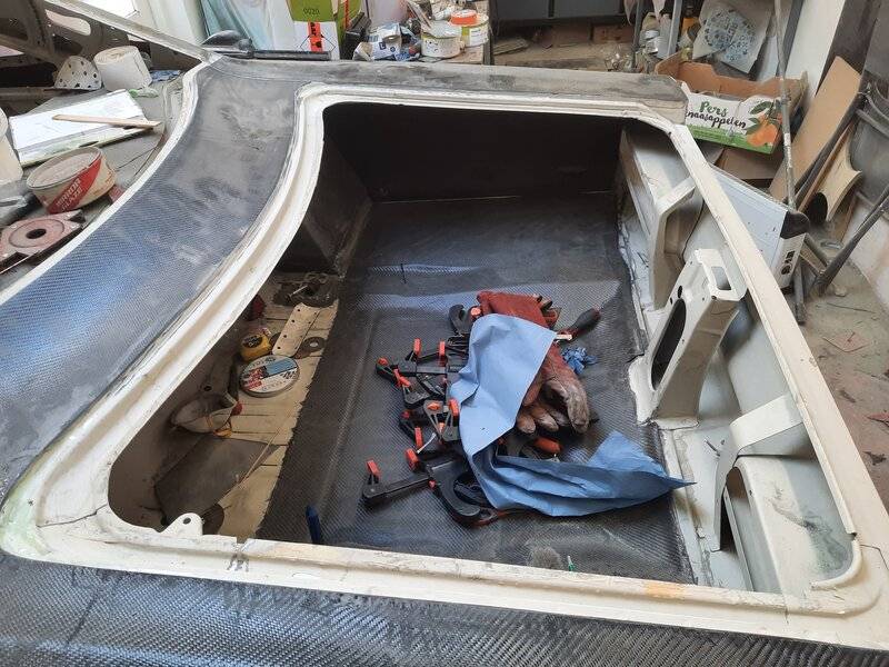 Next up is mounting the cf roof, but frist need to satin clear coat it since i want to have no headliner so tbe carbon is visuele front the inside