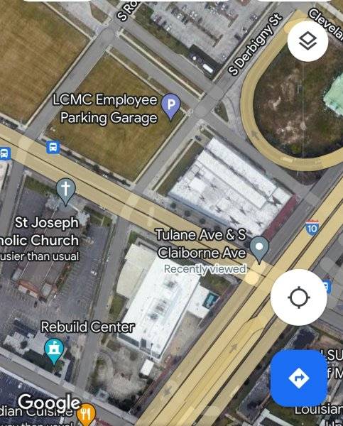 I had mentioned that my wife found Laney as a roughly 4 month old puppy in the heart of "concrete, blacktop, and steel" New Orleans trying to cross Tulane Avenue by Claiborne Avenue. It was by St. Joseph's Church (patron Saint of Italy-which I have strong ancestral ties to). Here's that area: