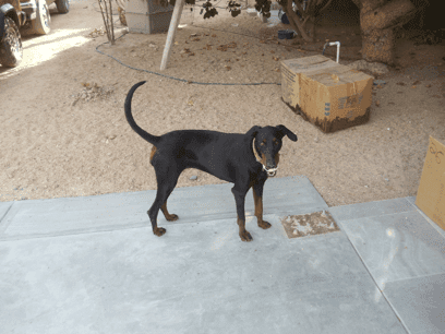We have a large property, so the three dogs run around on their own outside in the yard (a compound with solid wall all the way around). However, a couple of weeks ago I began taking our 3 year-old female Doberman on walks down the street and back (about seven blocks) twice a day for training purposes.