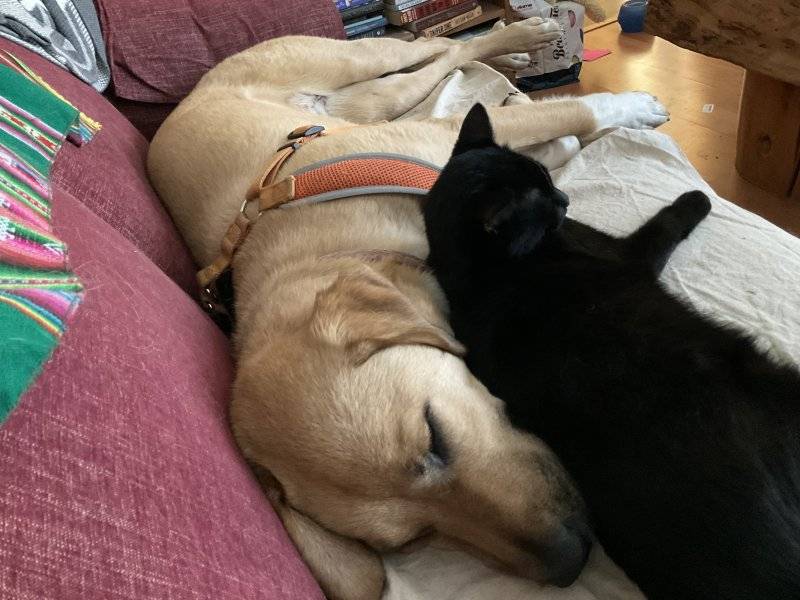 Once we returned home after the fire Cora and Stanley settled in to our home and three other cats. It took some doing to convince Cora that cats aren’t playthings to be tossed up in the air, and even though the other cats both fear and hate Cora, Stanley certainly has bonded with her. Cora not so much with Stanley but she tolerates him.