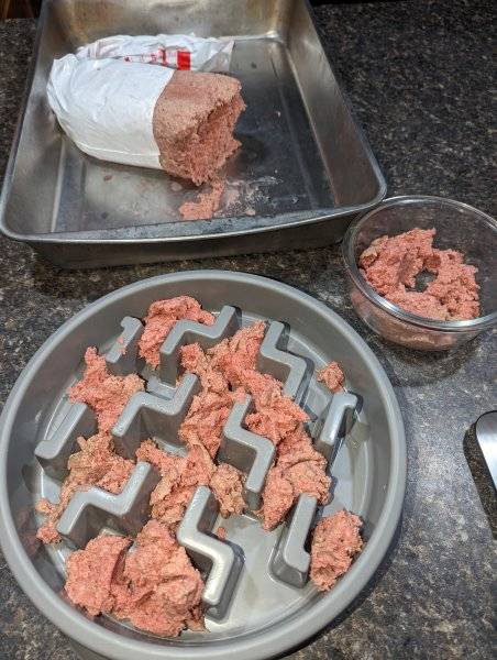 Decades ago I lived in the south for a while. There was a local pet food place that made fresh food like what you describe. They had a massive grinder, like the size of a truck. They would get roadkill, old farm animals, and butcher scraps and run them through this grinder. I think they skinned the animals but otherwise fed them whole, bones and all, into the grinder. What came out was a pink paste that they packaged and sold. I don’t know if they still do that but it was very popular.