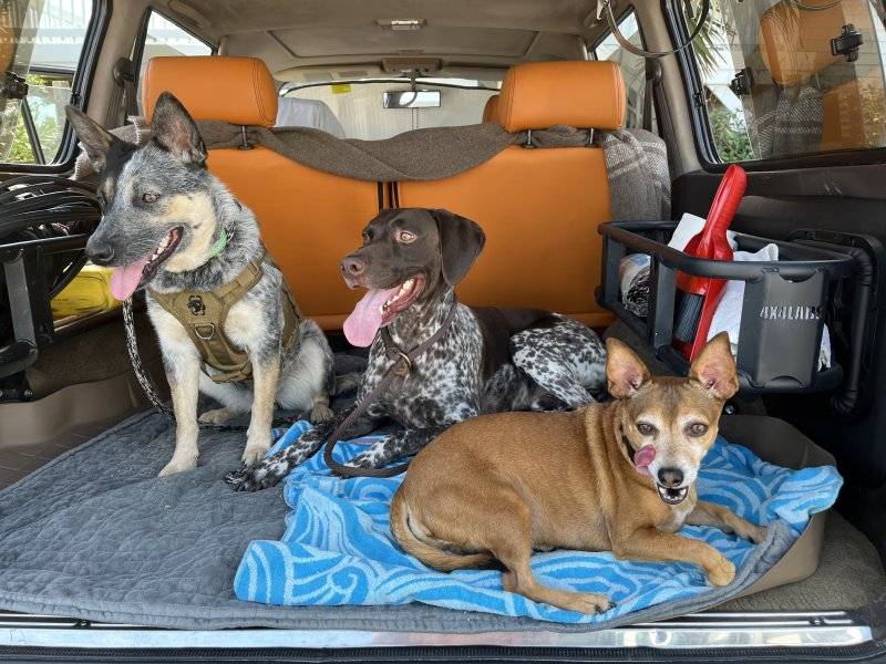 My pack anticipating a walk on the beach. F’ers rarely make it over the dunes before craping at least once… must be the cleansing of salt air