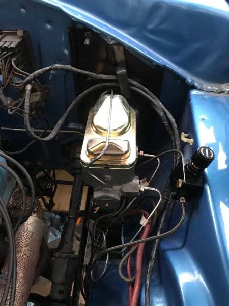 For front disc/rear drum a prop valve is recommended. I plumbed mine in with just 2 pre-made lines from Autozone and attached it in a pre-existing hole on the fender. Put it high up for ease of adjusting it. I wasn't concerned that it didn't look original. Got the master and prop valve from Summit.I appreciate that info. I've got one of those aftermarket boosters (installed by PO) and have always doubted it's effectiveness, plus, it takes up way too much room under the hood. It'll be coming off for a Rite Stuff master cylinder. Did you need a proportioning valve?
