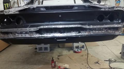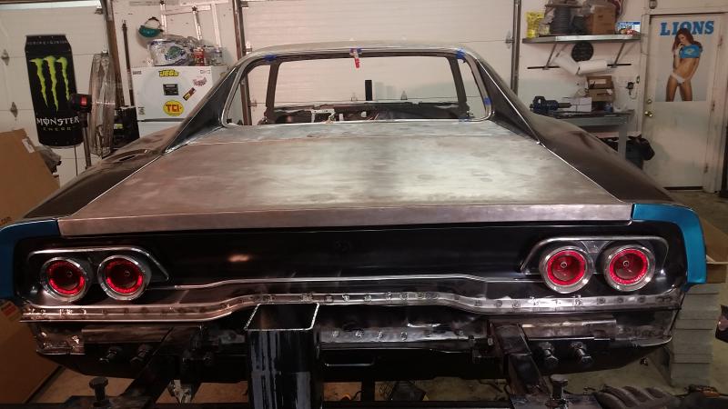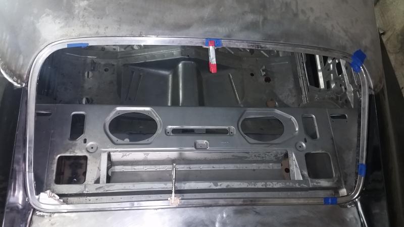 ot the passenger side rear quarter adjusted sightly to even out trunk lid reveal, persistence pays off, having the internet, and especially all the mopar guys posting there fine work here at fbbo sure is a blessing, would be nearly impossible to pull this off without them. The back glass fits!! taped the chrome trim together and did a rough fit, came out suprisingly well. have a gap at roof to sail panel contour on passenger side. I talked to a guy I know thats done a few of these, he said to definitely lead in these areas because of the stress, makes sense i was gonna lead in the quarter tie in areas anyway. Also he said to do the body work first, before epoxy, so I've researched that, think I will get it dipped first then use ever coat products to bondo over the epoxy, then prime. I'm looking for this paint to last a long time it wont ever see winter, might get caught in a rain storm, and will always be in a heated barn, probably going with ppg paint viper silver. Any thoughts?