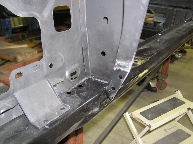 Looks good Don, I have to do the same with my rear door lock post on both sides. That bracket makes it a pain, how would you weld that in if you were only replacing and outer rocker? There must be some guys here who have done this?