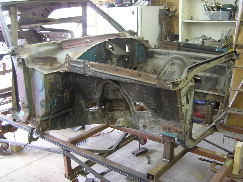 Because of the donor car that I had, I thought it would be much easier to replace the entire front clip. I only had minor rust areas to fix. (door hinge pillar) Rather than mess around repairing frame rails, lower cowl, door hinge pillar, and the torsion bar crossmember from the original front clip.