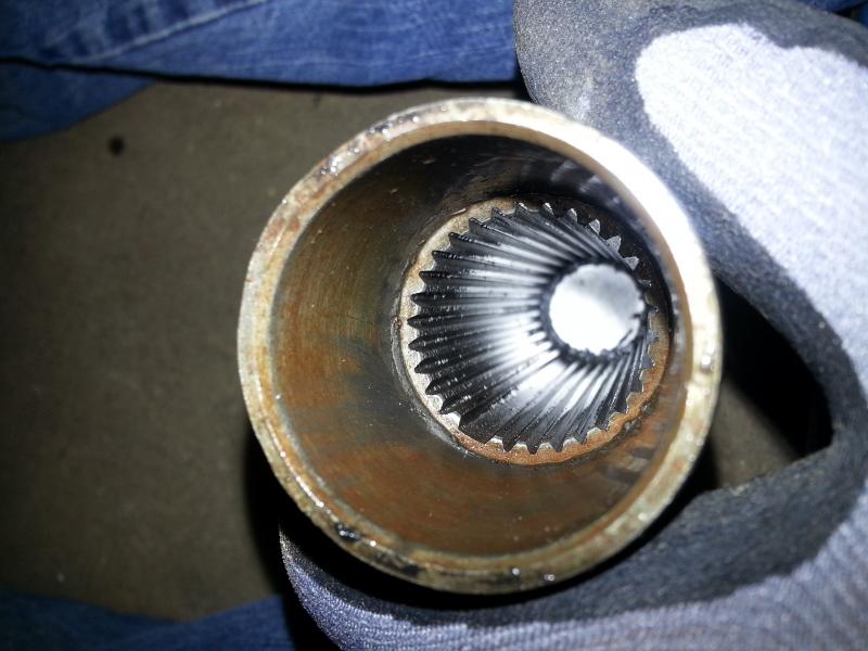 It's a little hard to see but it looks like there is something going on just inside the tailshaft housing or the splines are short. just can't see it well in the pic.