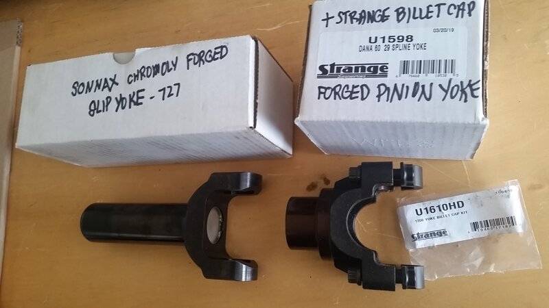 I didn't ask the brand, but the slip yoke for a 1350 U-Joint is included at $700. The 1350 pinion yoke was $165 but I didn't ask the brand of that either. Thanks Mike!Another very important thing....as I don't see any mention of it yet....You gotta have a SONNAX Forged Slip Yoke. You can get it from Summit.