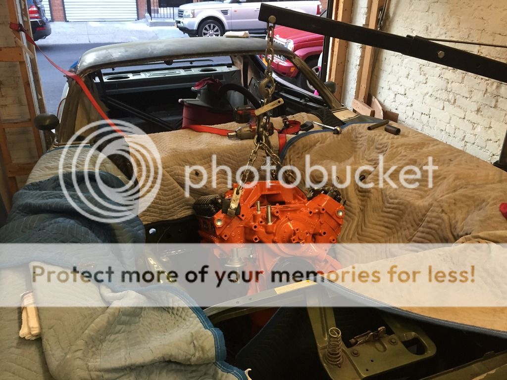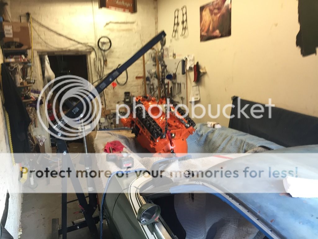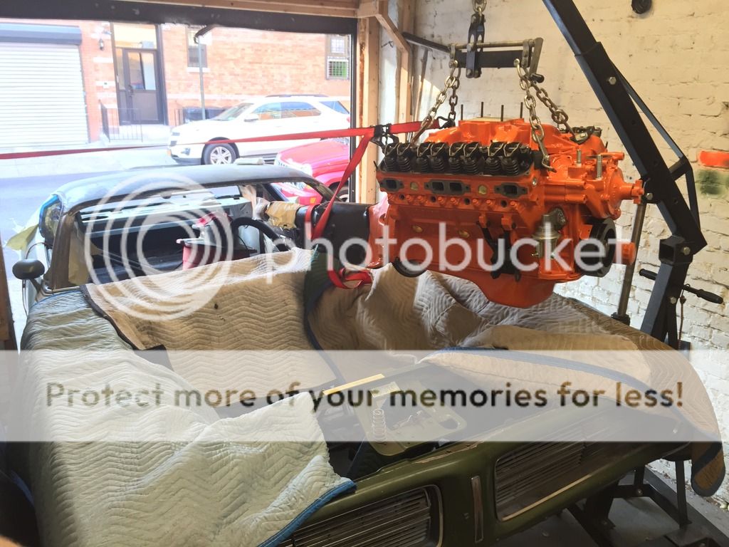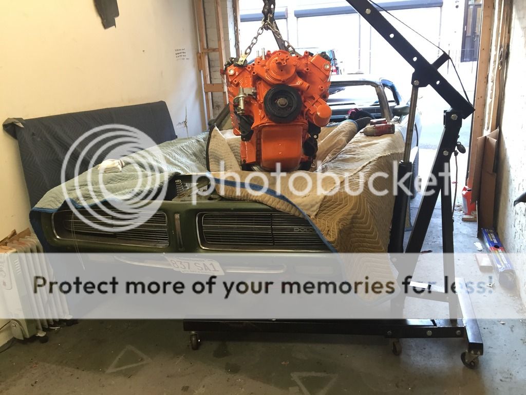 The other problem I'm having became apparent when we were trying to drop the engine is without the tranny on it.... The cherry picker won't reach! The nose of the 71 Charger is so long (There is like a foot and a half of space between the radiator support on bumper) that the jack of the cherry picker hits the front bumper before the motor can move all the way back to being over the mounts! Any suggestions there?