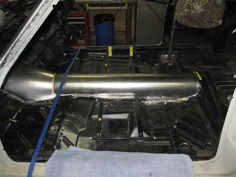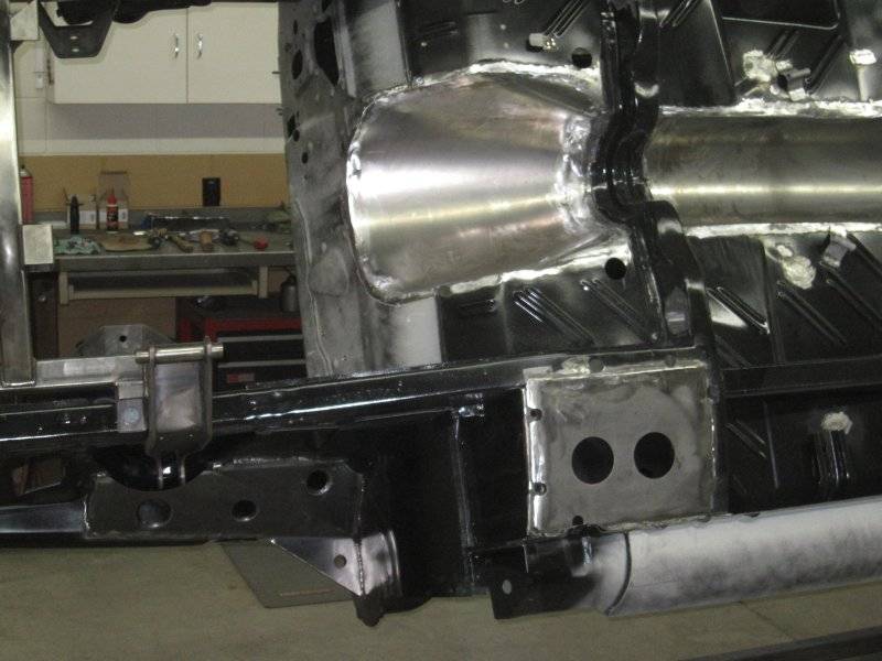 You could certainly fab a new one. Especially if most of the floor needs to get cut up. But if it's only the tunnel than needs mods? Probably a lot less work jut to slice out the center of the crossmember and tunnel and not beat up the rest of the floor. Then just enlarge the tunnel and add a center setion to the crossmember. Though mine runs the stock crossmember it does have the tunnel enlarged. Still retains the factory throttle pedal location. it was pretty easy. Made the new piece over sized. Bent it around a piece of 10" PVC pipe. Tack welded in in. Trimmed off the excess. Welded the edge top and bottom. That way it could be metal finished on the edge. In your case just go back a far as needed.