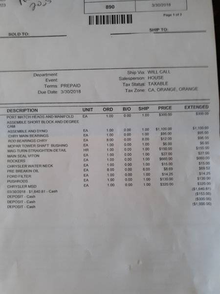 My guy machined the block and inspected the 440 source kit and the Trick flows. Installed cam bearings and fit cam. I asembled and will bring it to him for Dyno breakin and tuning. $500 plus some of his choice of breakin oil. Well worth it. Goes in tomorrow wish me luck.
