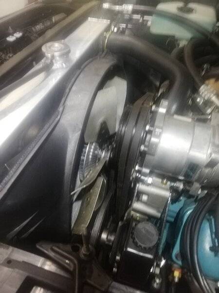 Running a Hayden HD fan clutch and the fan that came with the car - no cluevwhat it is (see pic) also have a derale 6 blade fan here but the noice level was just too much