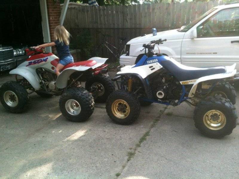 Love that little 50cc I see in there. And the 80 you referenced reminds me of when we were younger as kids we had an ATC 70. Then later when my wife and I had our own kids we found another ATC 70 just like I had when I was a kid and started our own kids on it. Heres a pic I found of the ATC70 we had as kids.We have always had Power wheels for the kids and real quads as well. First one is my youngest Son on our little LT50. Then on his own Quad Sport 230 many years later. We also have a Honda 80 for the kids and many other quads to ride on as well. The last one is my oldest Son now with my Grandson's First ride. On to the next Generation.