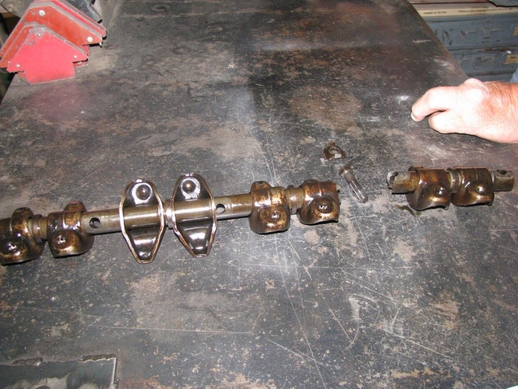 Another adventure---Went to a car show about 60 miles away this past Saturday. Brutus has been runnig GREAT ! I noticed a faint "clicking" when I arrived. When I left, the clicking progressivley got worse along with a "miss" Then it got much worse noise. I had good oil pressure--I bet a cam lobe wipeing out. Stopped to get a fresh ZDDP additive. Started up,---no oil pressure. Called a friend to come get me with his trailer. Pulled a valve cover off, and here is what we found.........................................MO